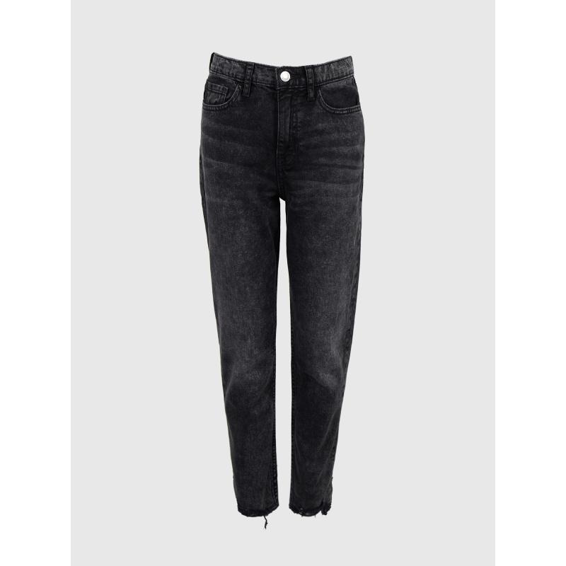 Dívčí džíny v černé barvě.Pohodlný střih mom.Pevný pas se zapínáním na zip a knoflík.V pase poutka na pásek.Klasických 5 kapes.5% recyklovaná bavlna. 94 % bavlna, 5 % recyklovaná bavlna, 1 % elastan