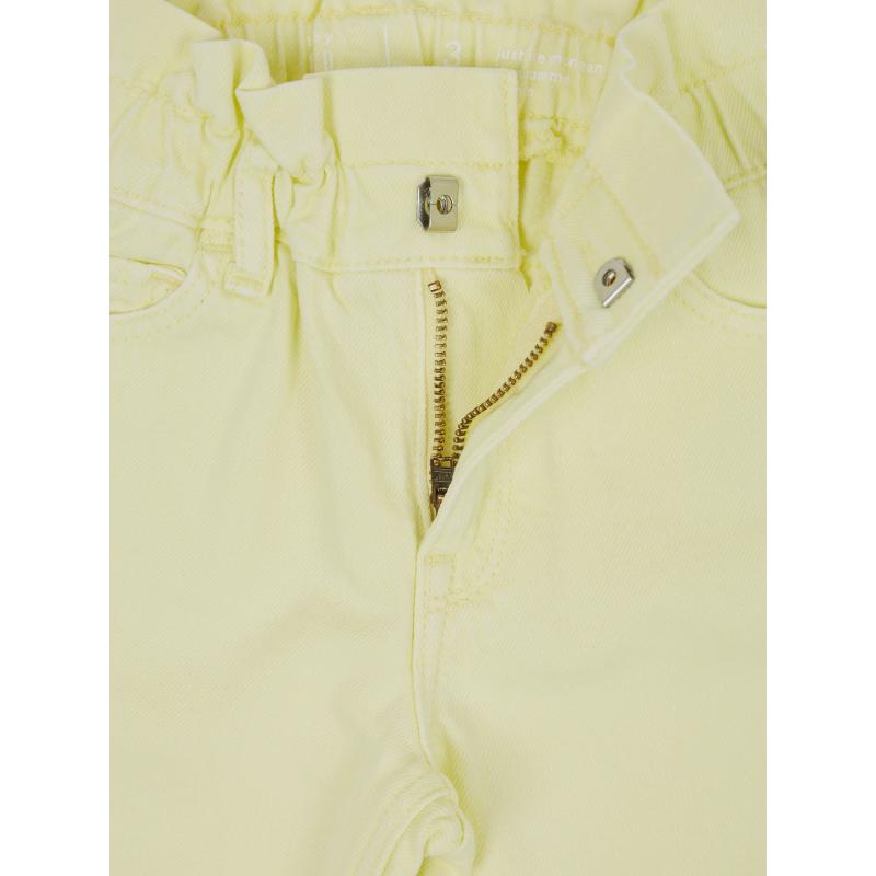 Dětské džíny ve žluté barvě.Střih mom.Zapínání na zip a knoflík.Pružný pas s poutky na pásek.Přední a zadní kapsy. 99 % bavlna, 1 % elastan