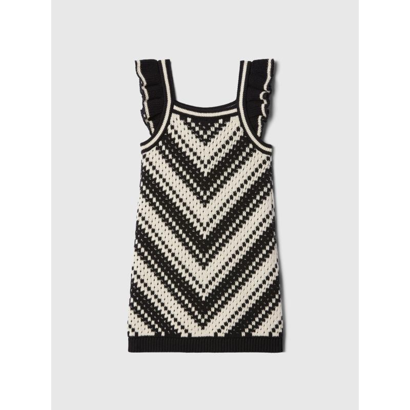 Dívčí háčkované šaty.Bez rukávů.Hranatý výstřih.Volánková ramínka.Kontrastní vzor. 100 % bavlna
