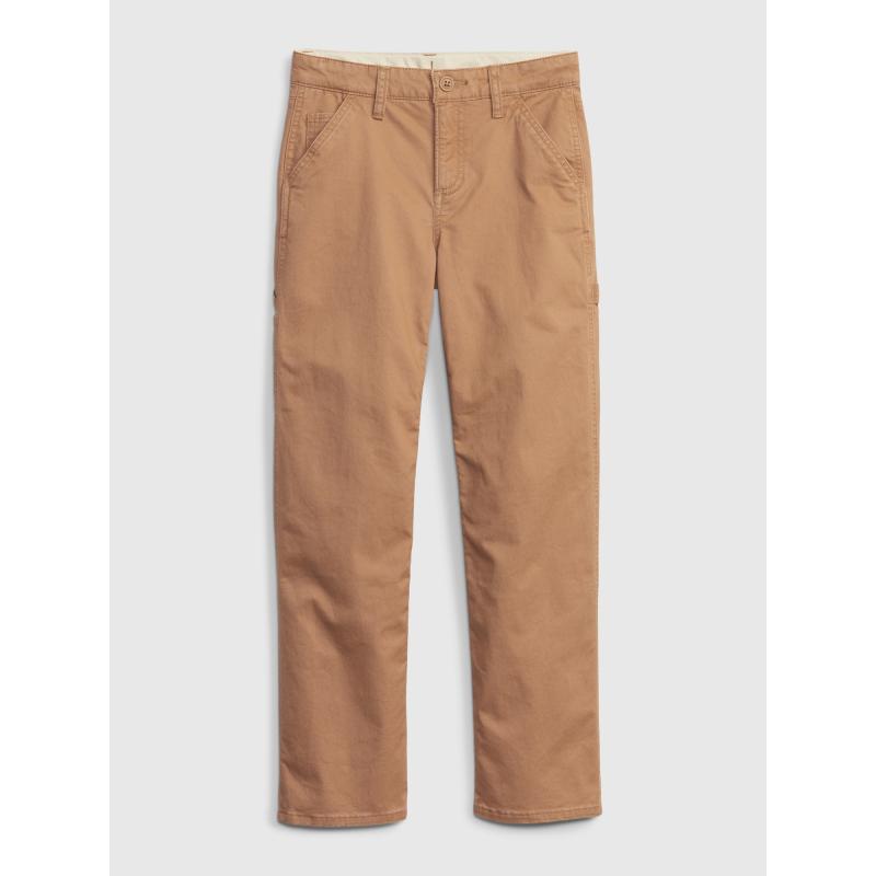Dětské jednobarevné kalhoty.Pevný pas se zapínáním na zip a knoflík.Přední šikmé kapsy.Zadní našité kapsy.Volný a rovný střih nohavic.Na jedné nohavici našitá kapsa.Poutka na pásek.5% recyklovaná bavlna. 93 % bavlna, 5 % recyklovaná bavlna, 2 % lycra
