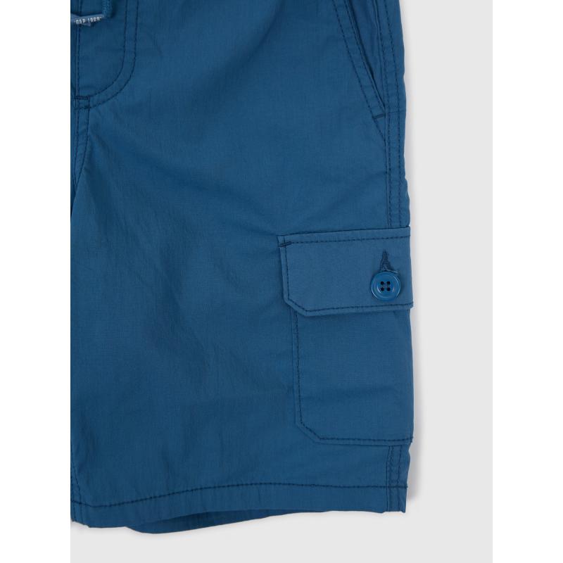 Dětské kraťasy s pružným pasem.V pase stahovací šňůrka.Přední šikmé kapsy.Našité kapsy s klopou. 65 % bavlna, 32 % nylon, 3 % elastan
