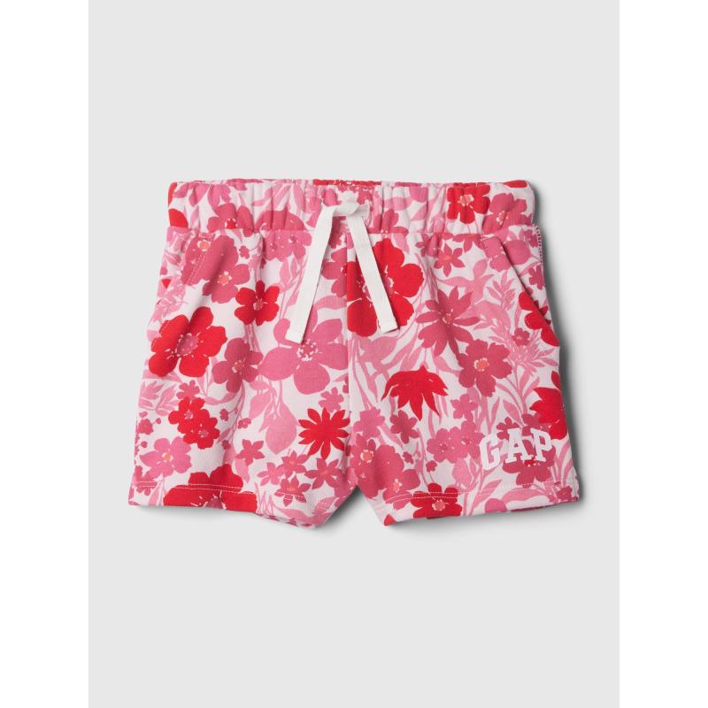 Dětské kraťasy s květy.Pružný pas se stahovací šňůrkou.Přední šikmé kapsy.S French Terry a logem.Materiál French Terry se vyznačuje pevnými smyčkami vláken a měkkým povrchem na vnitřní straně a je vhodnější do teplého počasí. 77 % bavlna, 23 % polyester