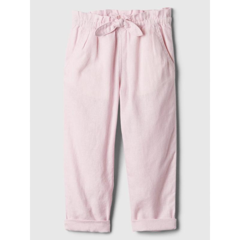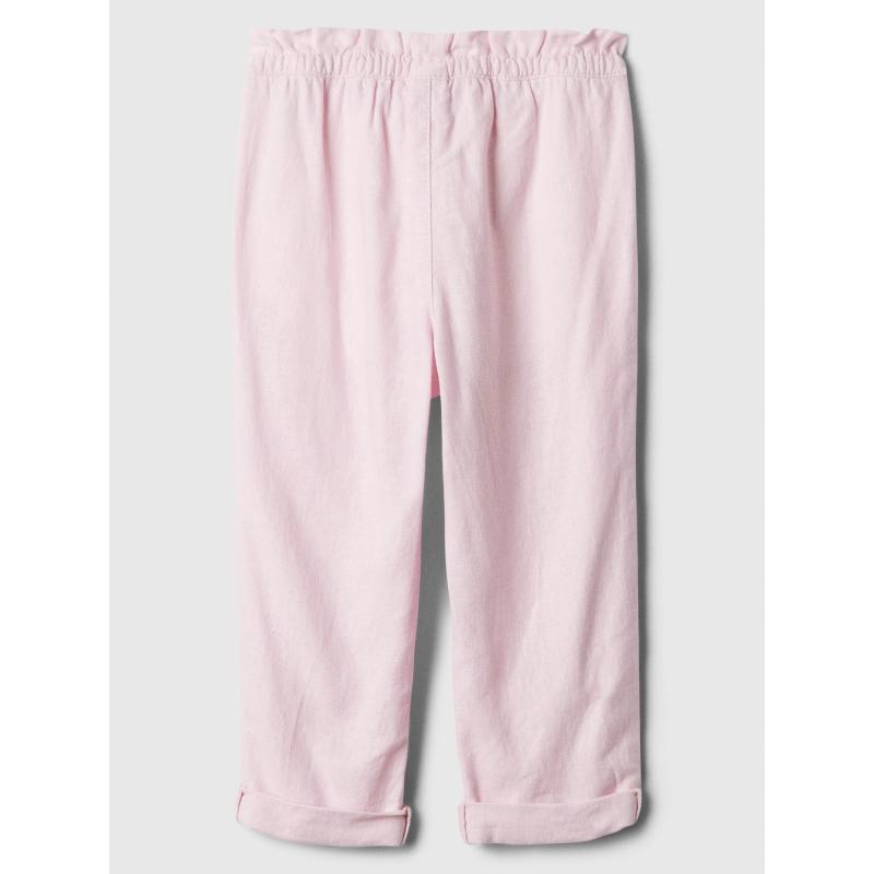 Dětské kalhoty.Směs len a viskóza.Pružný pas s mašličkou.Přední šikmé kapsy.Volný střih nohavic. 55 % len, 45 % viskóza