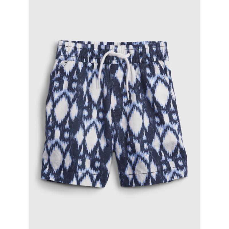 Dětské vzorované kraťasy.Pružný pas se stahovací tkaničkou.Přední šikmé kapsy.Zadní našité kapsy.Materiál bavlna a len. 55 % len, 45 % bavlna