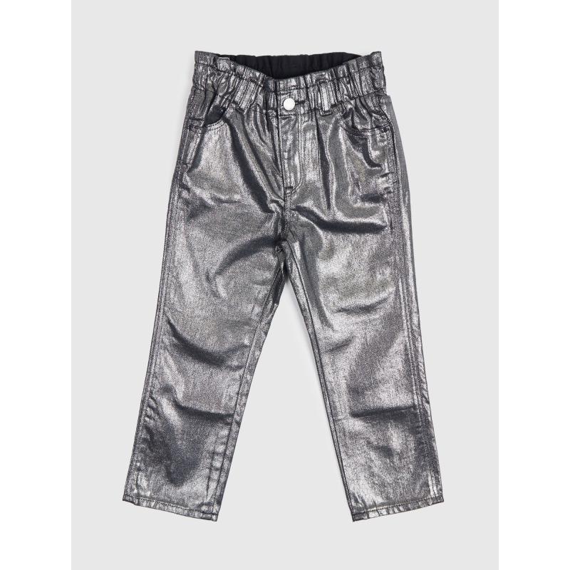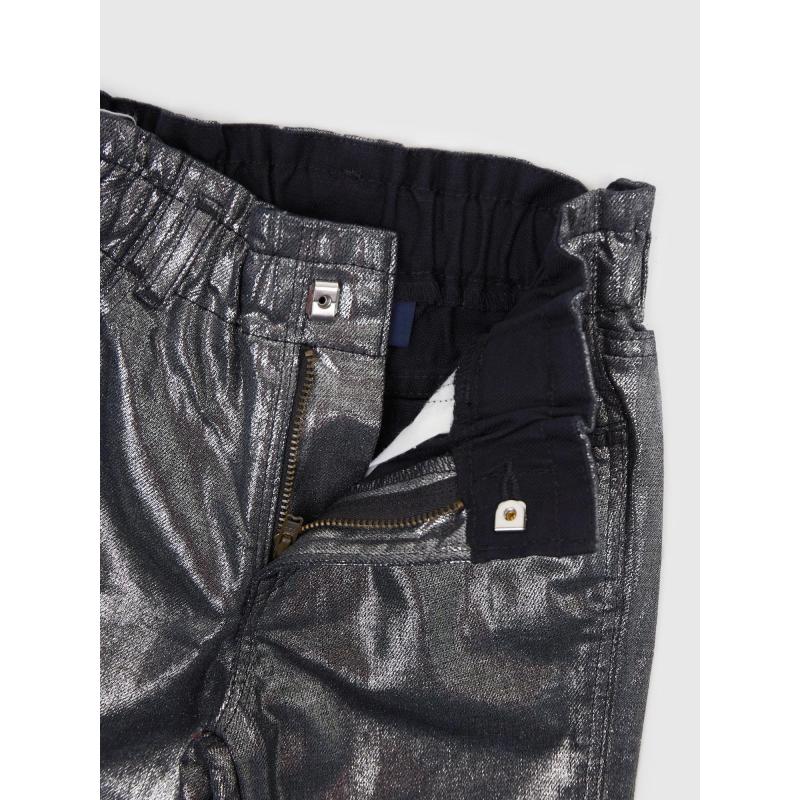 Dětské metalické džíny.Střih mom.Klasické zapínání.Poutka na pásek.Přední a zadní kapsy. 100 % bavlna