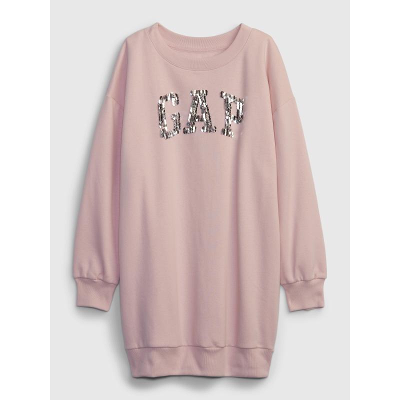 Dětské mikinové šaty.Dlouhé rukávy s náplety.Kulatý výstřih.Lesklé logo z flitrů. 77 % fleece, 23 % nekarbonizovaný pevný materiál