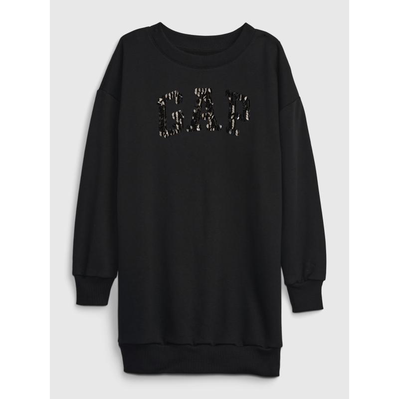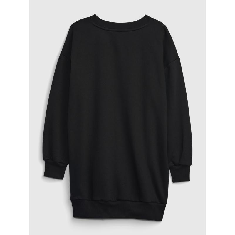 Dětské mikinové šaty.Dlouhé rukávy s náplety.Kulatý výstřih.Lesklé logo z flitrů. 77 % fleece, 23 % nekarbonizovaný pevný materiál