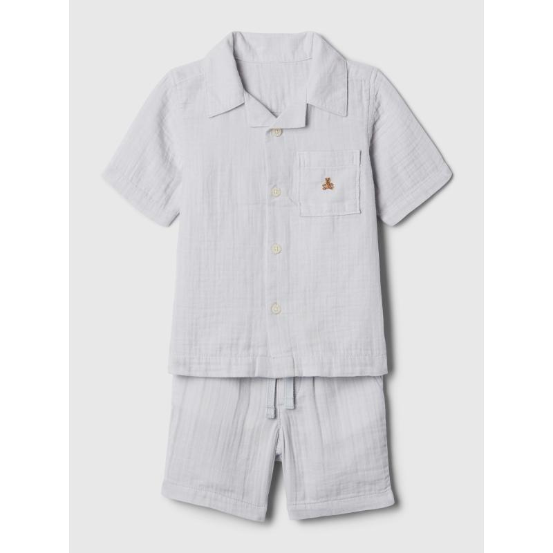 Dětské mušelínové pyžamo.Pažamový kabátek.Klopy a zapínání na knoflíky.Kpasička s výšivkou medvídka.Rovný střih.Kraťasy s pružným pasem.Kapsy s klopami.Seznamte se s roztomilým méďou Brannan, který je maskotem Gap již více než 20 let. Drobnou značkou medvídka je označeno pouze nejhebčí a nejměkčí dětské oblečení. Vyzkoušejte měkkost a hebkost vybraných materiálů a dopřejte svému děťátku pohodlí po celý den. Medvídek Brannan je tu pro vás.Více z kolekce Brannan Bear > . 100 % bavlna