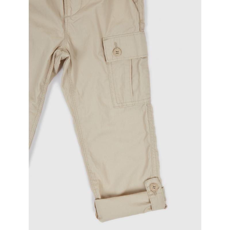 Dětské kraťasy s kapsami.Pružný pas se stahovací šňůrkou.Přední šikmé kapsy.Zadní kapsy s klopou.Našité kapsy s klopou a zapínáním na knoflíky.Rovný střih nohavic s možností zkrácení. 100 % bavlna