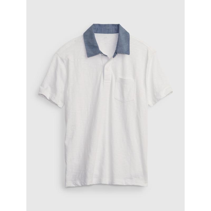 Dětské polo tričko.Krátké rukávy.Chambray límeček s knoflíkovou légou.Chambray - lehká, měkká a prodyšná tkanina z bavlny, vzhledem podobná džínovině, ale jemnější a pohodlnější, ideální pro letní oděvy.Rovný, pohodlný střih.Délka po boky.Ideální pro každodenní nošení. 100 % bavlna