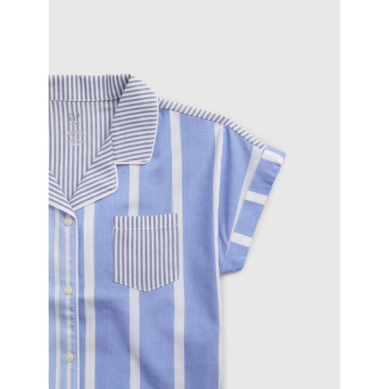 Dětské pruhované pyžamo.Kabátek s klopami a kapsičkou.Krátké rukávy a zaoblený spodní lem.Pyžamové kraťasy s pružným pasem.Recyklovaný polyester. 100 % recyklovaný polyester
