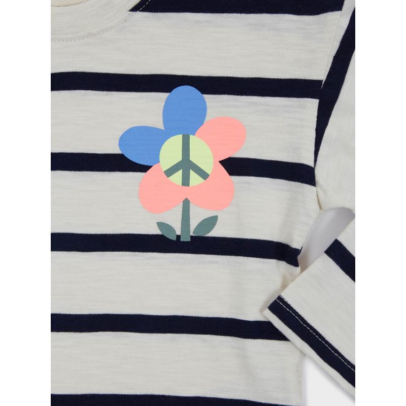 Dětské pruhované tričko.Na přední straně barevná květina.Kulatý výstřih a dlouhé rukávy. 100 % bavlna