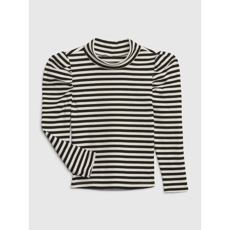 Dívčí pruhované tričko.Nabírané dlouhé rukávy.U krku stojáček a rovný střih.Měkký úplet s jemným žebrováním. 95 % bavlna, 5 % elastan