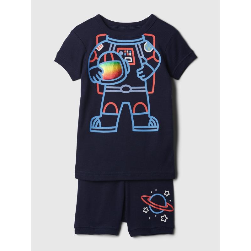 Dětské krátké pyžamo.Tričko s potiskem kosmonauta.Krátké rukávy a kulatý výstřih.Pyžamové šortky s pružným pasem. 100 % organická bavlna