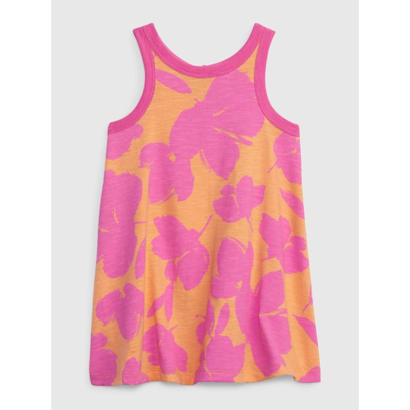 Dívčí šaty tílkového střihu.Kulatý výstřih s žebrovaným lemem.V zadní části zapínání na knoflíčky.Střih do A. 100 % bavlna