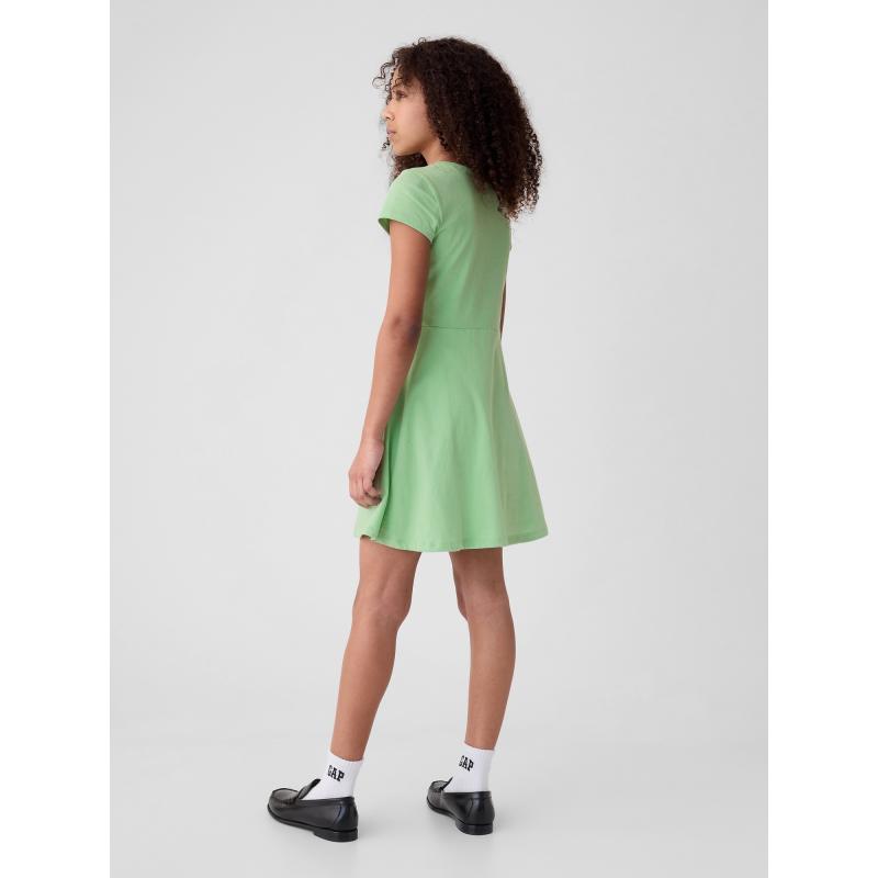 Dětské jednobarevné šaty.Krátký rukáv a výstřih ke krku.Délka ke kolenům.S logem. 100 % bavlna
