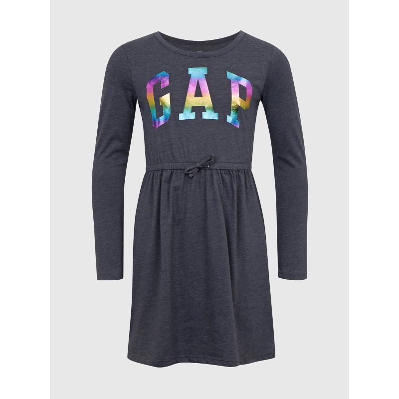 Dívčí jednobarevné šaty.Měkký bavlněný úplet.Metalické logo Gap.Kulatý výstřih a dlouhé rukávy.Pružný pas se stahovací šňůrkou. 100 % bavlna