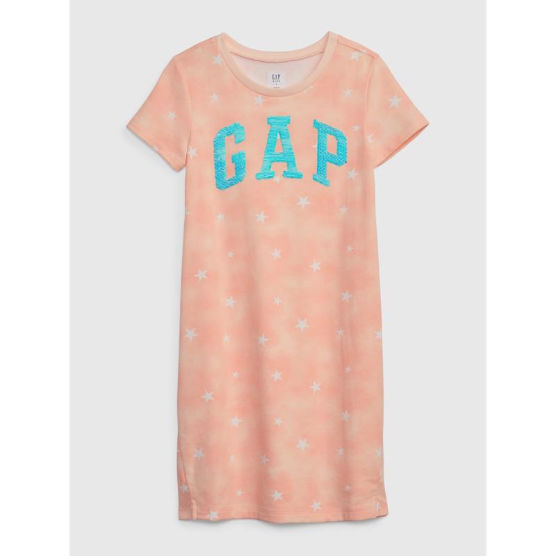 Dívčí šaty.Logo z flitrů.Krátký rukáv a kulatý výstřih.7% recyklovaný polyester. 60 % bavlna, 33 % polyester, 7 % recyklovaný polyester