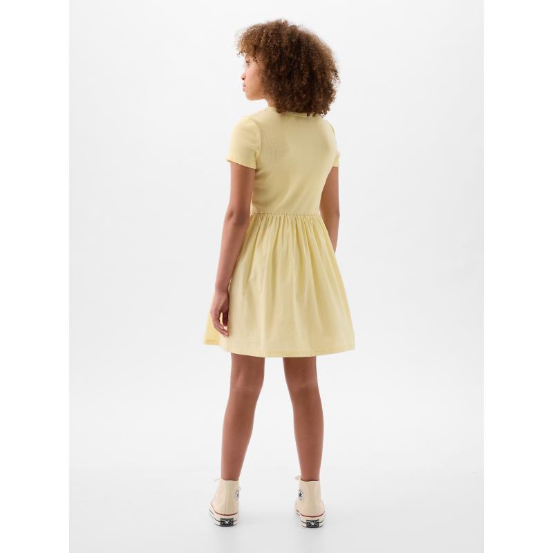Dětské jednobarevné šaty.Krátký rukáv a výstřih ke krku.V pase nabíraná sukně.Délka ke kolenům. 100 % bavlna