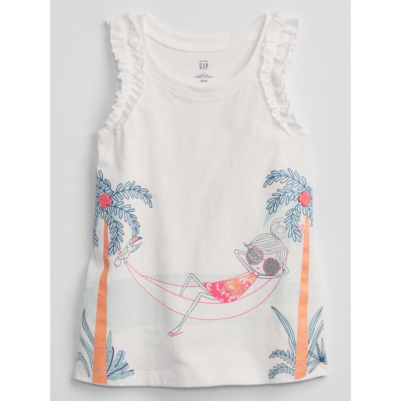 Dívčí jednobarevné tílko.S vícebarevným obrázkem.Volánková ramínka.100% bavlna. 100 % bavlna