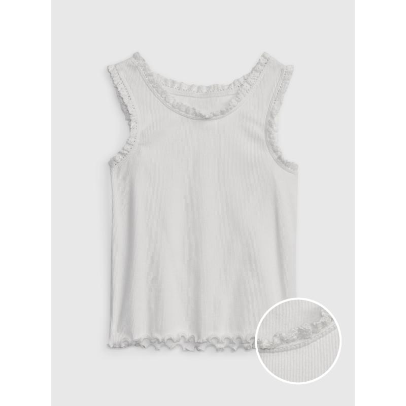 Dětské tílko s krajkovým lemem.Kulatý výstřih.Jemný žebrovaný vzor.Široká ramínka.Měkký úplet.Spodní díl ozdobně olemován. 100 % bavlna