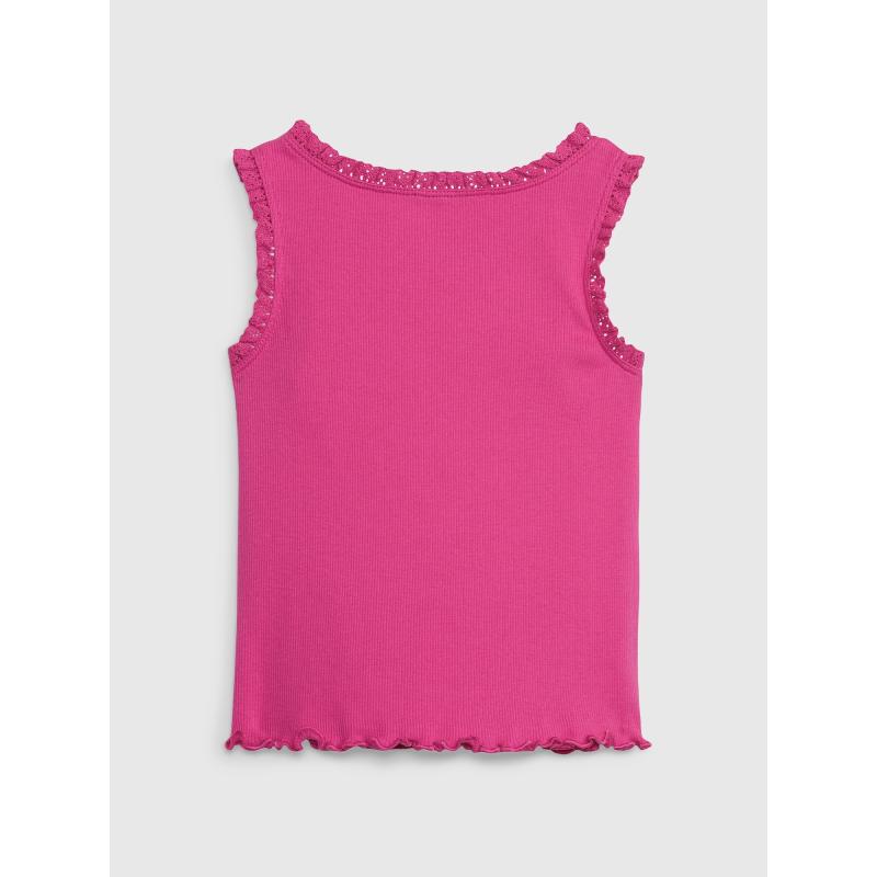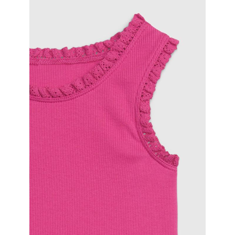 Dětské tílko s krajkovým lemem.Kulatý výstřih.Jemný žebrovaný vzor.Široká ramínka.Měkký úplet.Spodní díl ozdobně olemován. 100 % bavlna