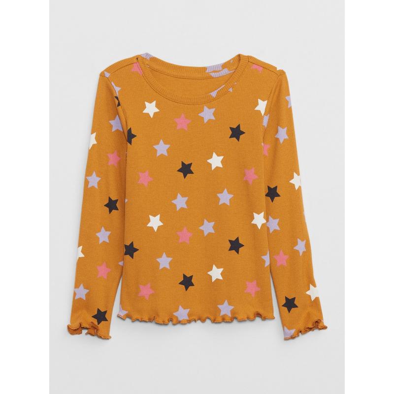 Dětské vzorované tričkoDlouhé rukávy s volánkemKulatý výstřih a rovný střih. 100 % bavlna