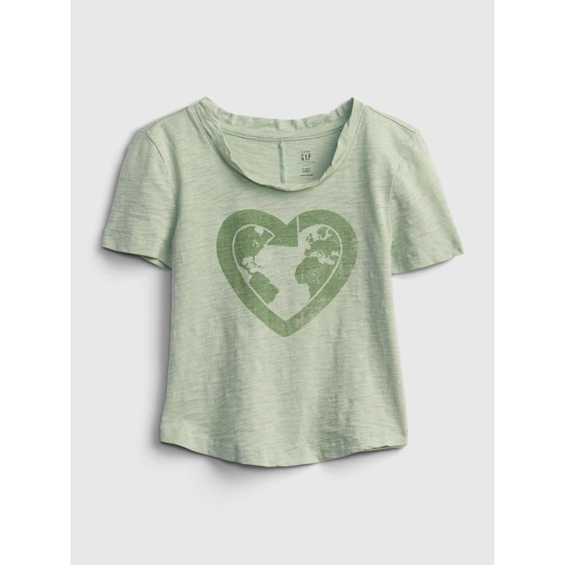 Dívčí jednobarevné tričko Gap ze 100% organické bavlny.Tričko s krátkým rukávem, kulatým výstřihem ke krku a zakončené do kulata.Obrázek srdce na předním dílu. 100 % organická bavlna