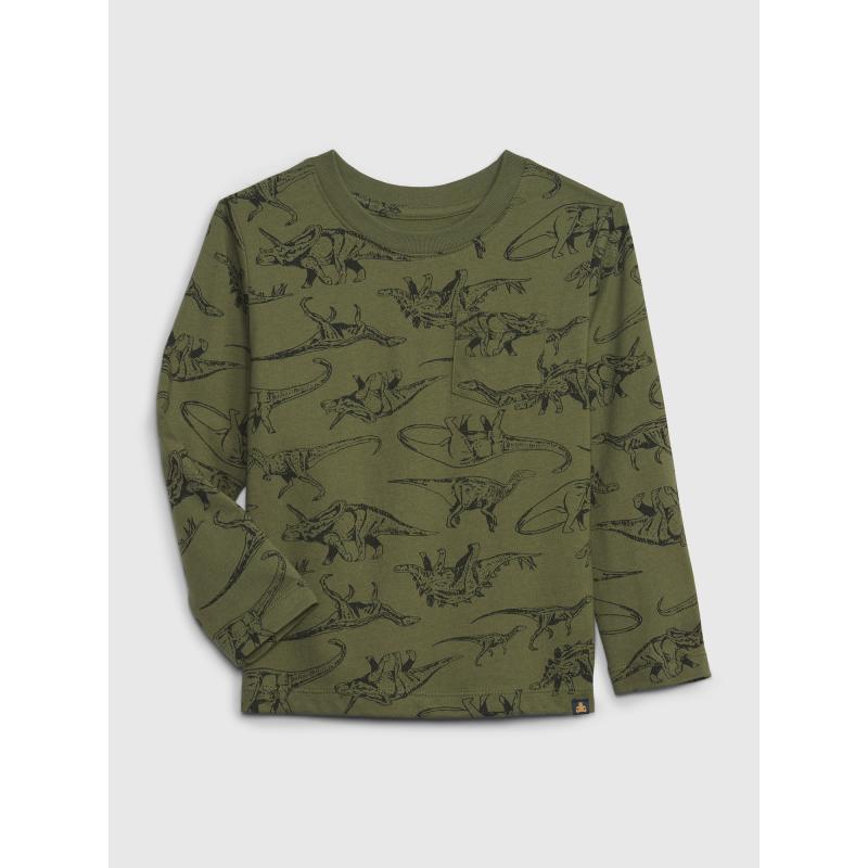 Dětské tričko z organické bavlny.Plošný potisk s dinosaury.Na hrudi našitá malá kapsička.Dlouhé rukávy a kulatý výstřih.Seznamte se s roztomilým méďou Brannan, který je maskotem Gap již více než 20 let. Drobnou značkou medvídka je označeno pouze nejhebčí a nejměkčí dětské oblečení. Vyzkoušejte měkkost a hebkost vybraných materiálů a dopřejte svému děťátku pohodlí po celý den. Medvídek Brannan je tu pro vás.Více z kolekce Brannan Bear > . 100 % organická bavlna