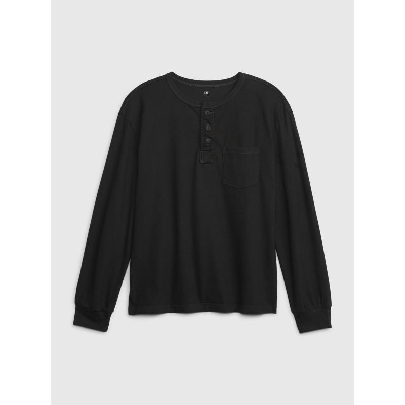 Dětské bavlněné tričko.Na hrudi našitá malá kapsička.Kulatý výstřih se zapínáním na knoflíčky.Rovný střih.Dlouhé rukávy s náplety. 100 % bavlna