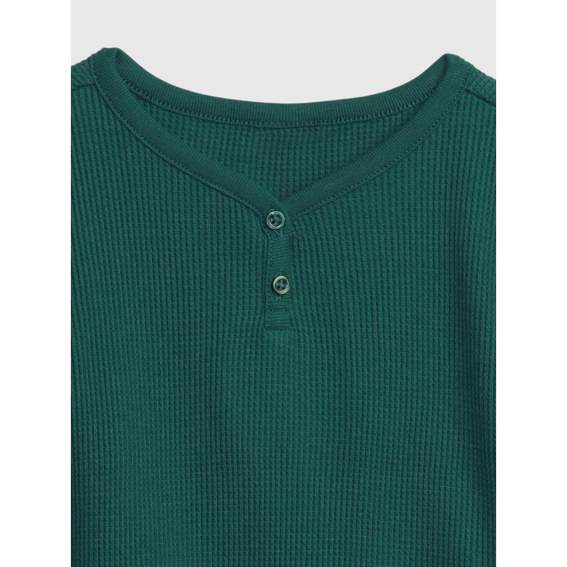Dětské jednobarevné tričko.Z měkkého úpletu s vaflovou vazbou.Dlouhé rukávy a kulatý výstřih.U krku zapínání na dva knoflíčky.100% bavlna. 100 % bavlna