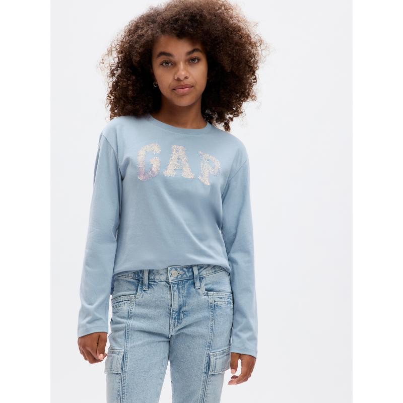 Dětské tričko z organické bavlny.S dlouhým rukávem.S metalickým logem.Kulatý výstřih ke krku.Rovný střih. 100 % organická bavlna