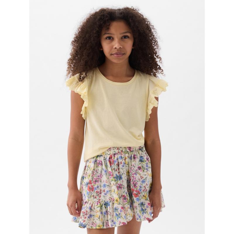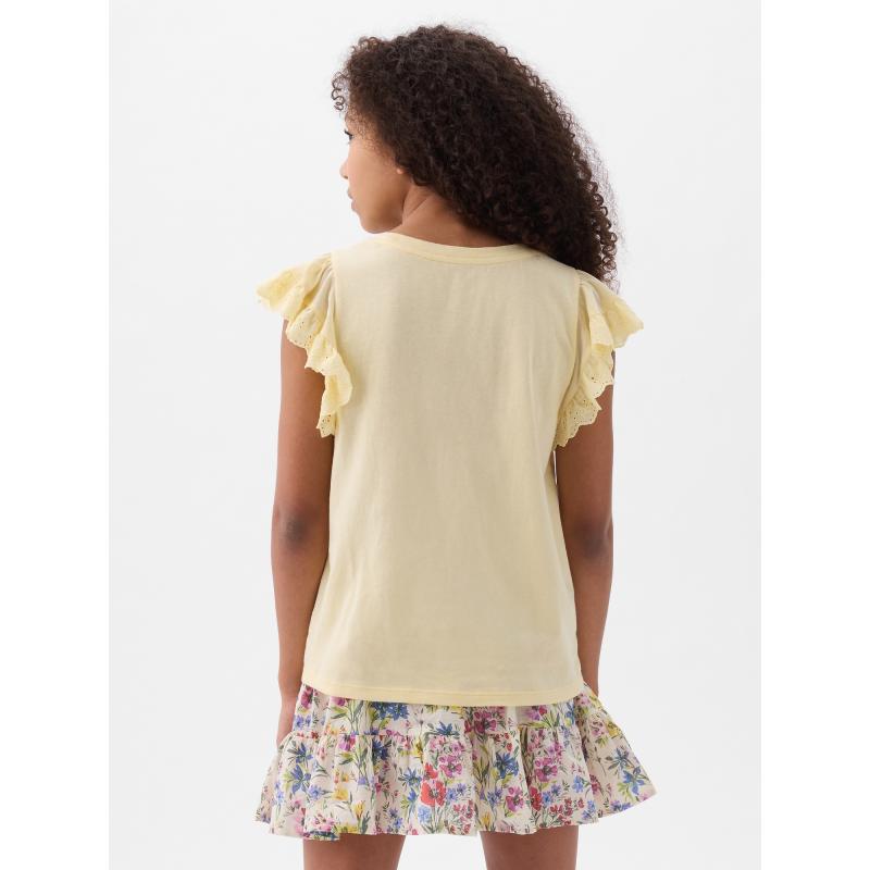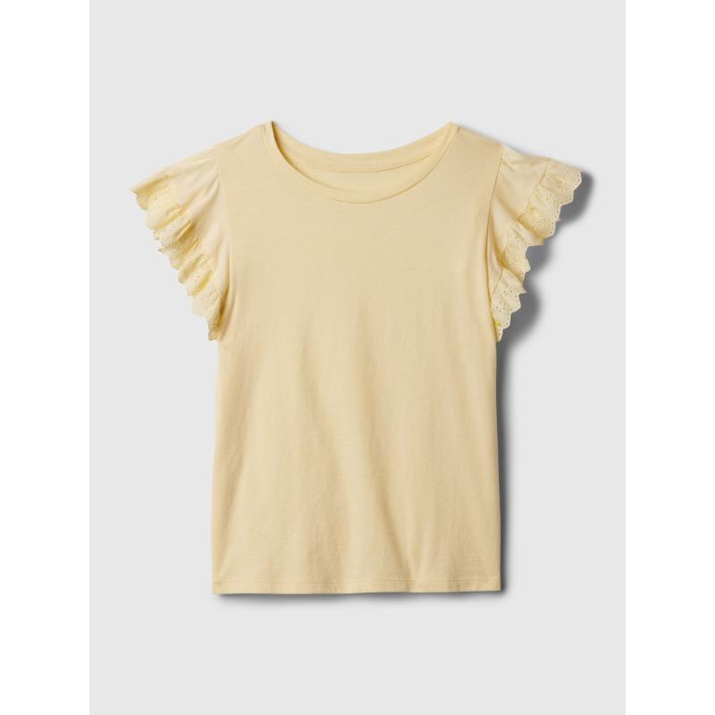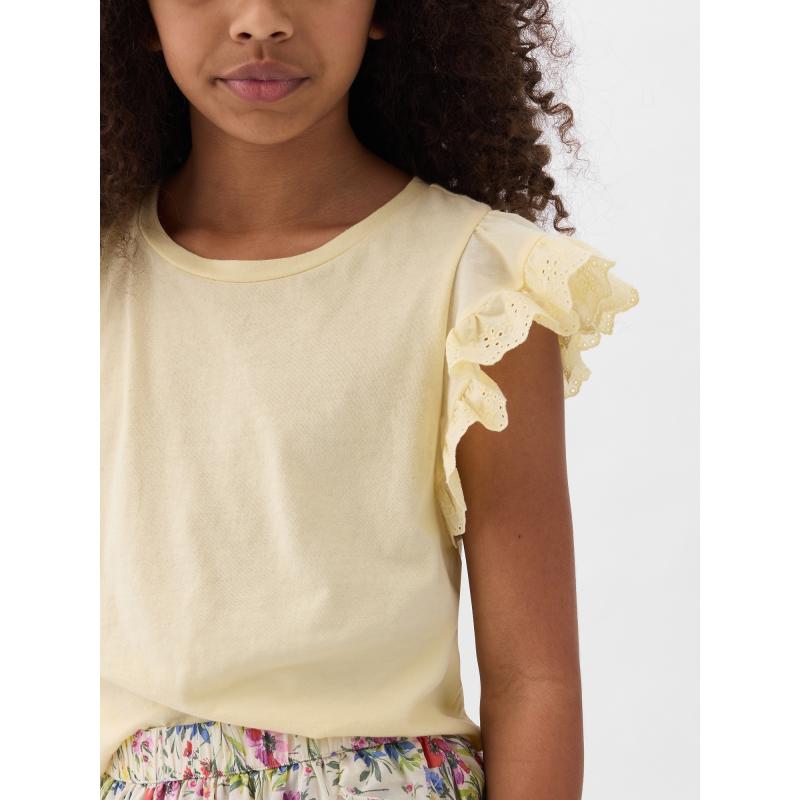 Dětské bavlněné tričko.Krátké volánové rukávy.Kulatý výstřih a rovný střih.Měkký jednobarevný úplet. 100 % bavlna