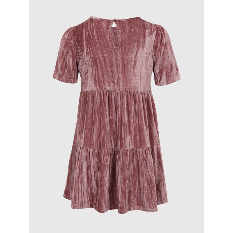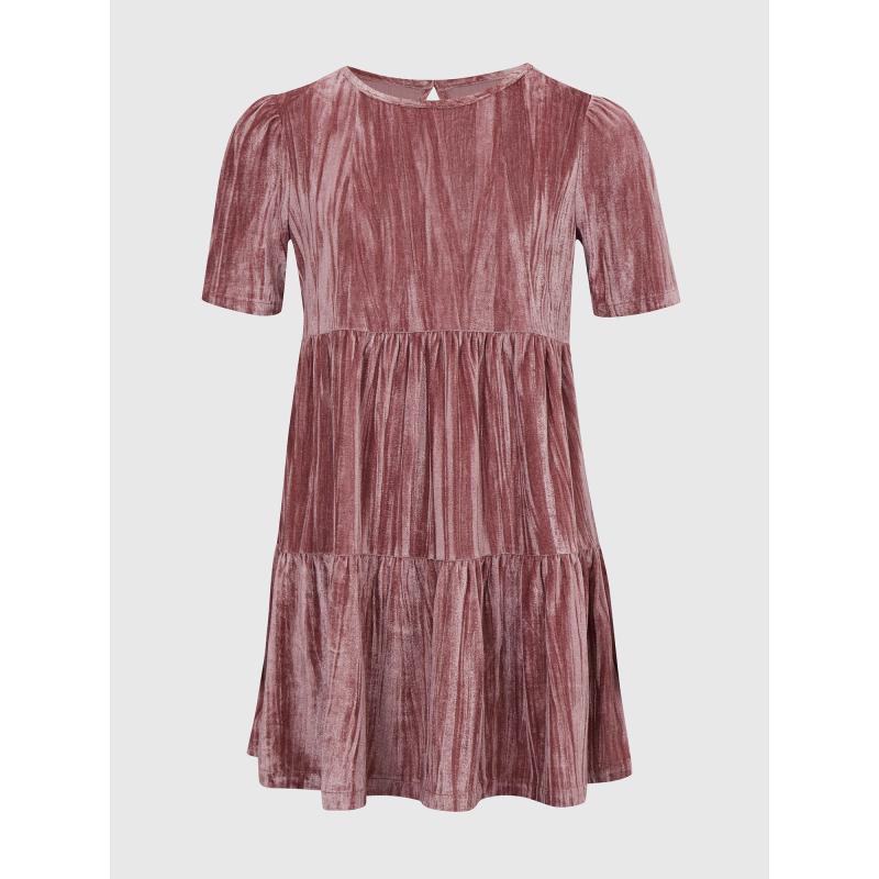 Dívčí sametové šaty.Kulatý výstřih a zapínání za krkem.Krátký rukáv.Nabírané volány. 95 % polyester, 5 % elastan
