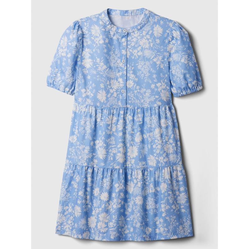 Dívčí vzorované šaty.Kulatý výstřih se zapínáním na knoflíčky.Krátké balónové rukávy.Nabírané volány. 100 % bavlna Better Cotton (BCI)