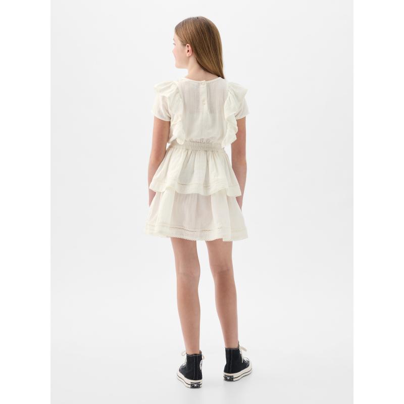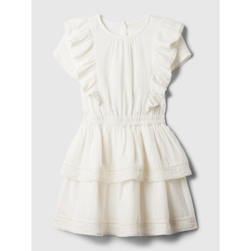 Dívčí šaty s volány.Výstřih ke krku.Krátké rukávy.Zvýrazněný pas.Volánová sukně. 100 % bavlna