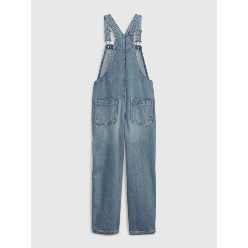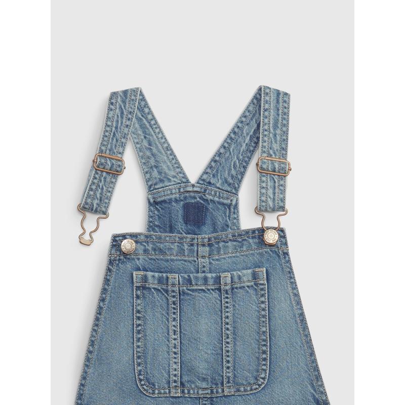 Dětské džínové lacláče.Náprsní kapsa.Nastavitelné ramenní popruhy.Styl s 5 kapsami.Volné rovné nohavice.100% bavlna. 95 % bavlna, 5 % recyklovaná bavlna