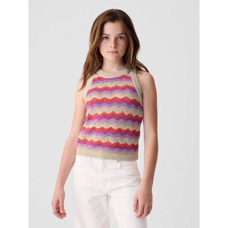 Dívčí háčkovaný top.Kulatý výstřih.Bez rukávů.Rovný střih.100% bavlna. 100 % bavlna