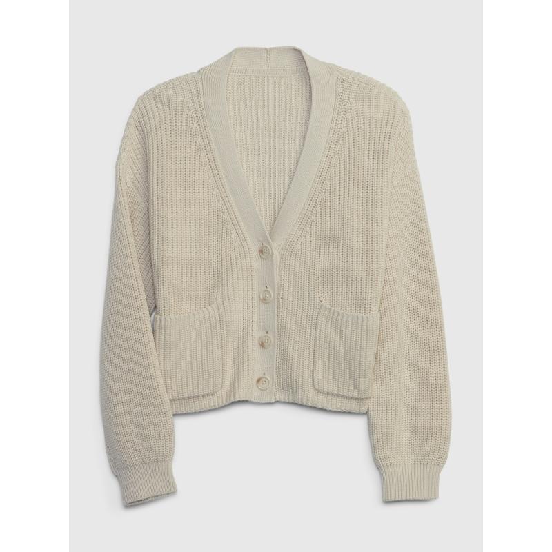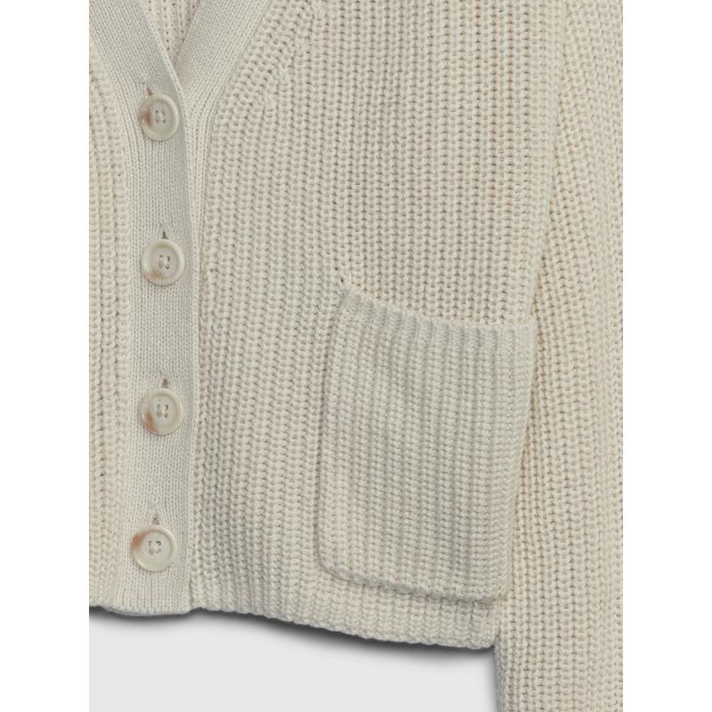 Dětský svetr na zapínání.Spadlé dlouhé rukávy.Hluboký výstřih do V.Kratší střih a pružné lemy.Žebrovaný vzor.Přední kapsy. 100 % bavlna