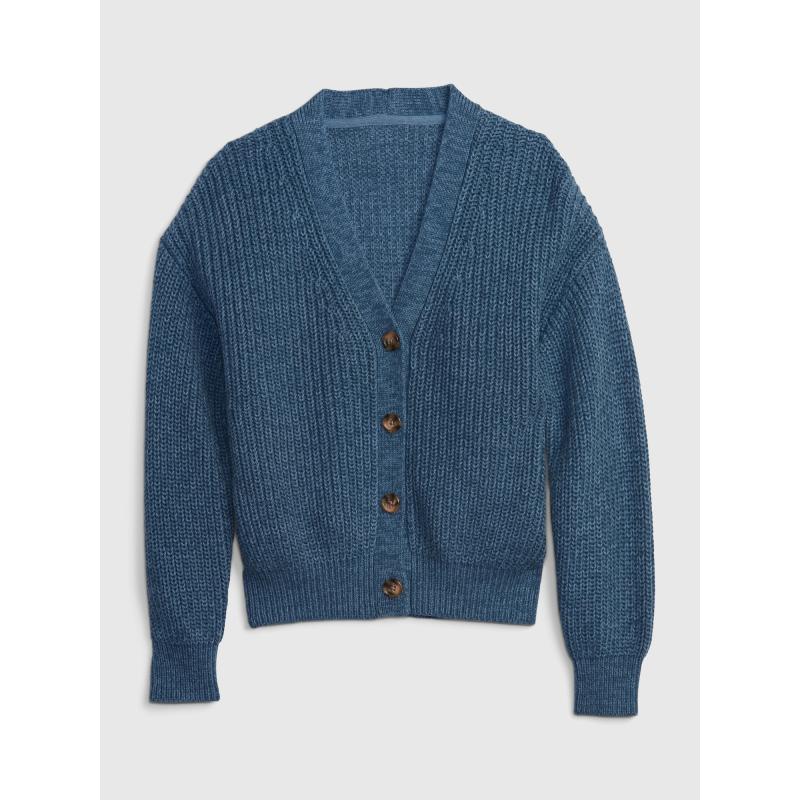 Dětský svetr na zapínání.Velké knoflíky v žíhané barvě.Spadlé dlouhé rukávy.Hluboký výstřih do V.Kratší střih a pružné lemy.Široký žebrovaný vzor.100% bavlna. 100 % bavlna