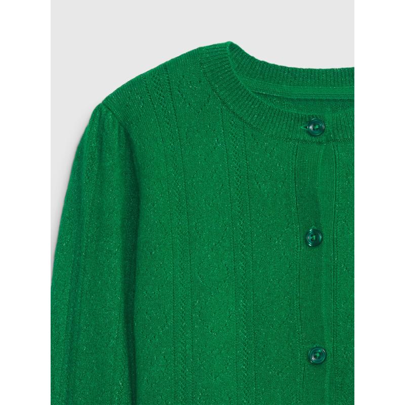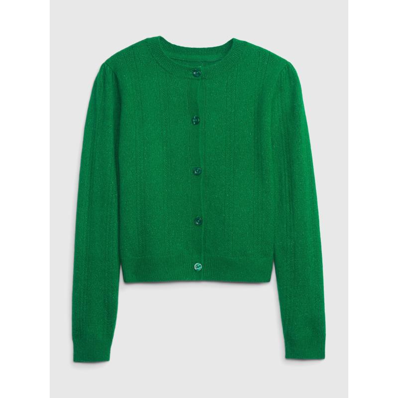 Dětský svetr na zapínání.V zelené barvě.Kulatý výstřih s pružným lemem.Kratší střih a drobný vzor. 75 % akryl, 22 % polyester, 3 % elastan