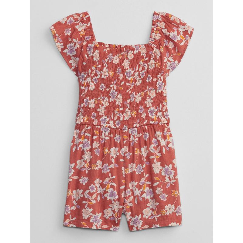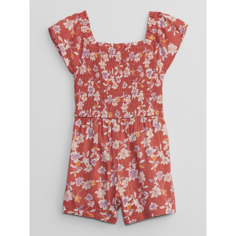 Dětský květovaný overal.Čtvercový výstřih.Krátký rukáv.Řasený a pružný vrchní díl.Krátké a volné nohavice. 55 % bavlna, 45 % viskóza