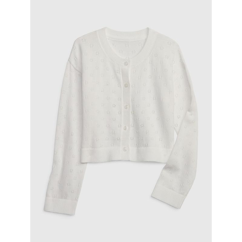 Dětský pletený kardigan.Se zapínáním na knoflíčky.Dlouhé rukávy s žebrovaným lemem.Měkká bavlněná pletenina.Krajkový vzor. 100 % bavlna