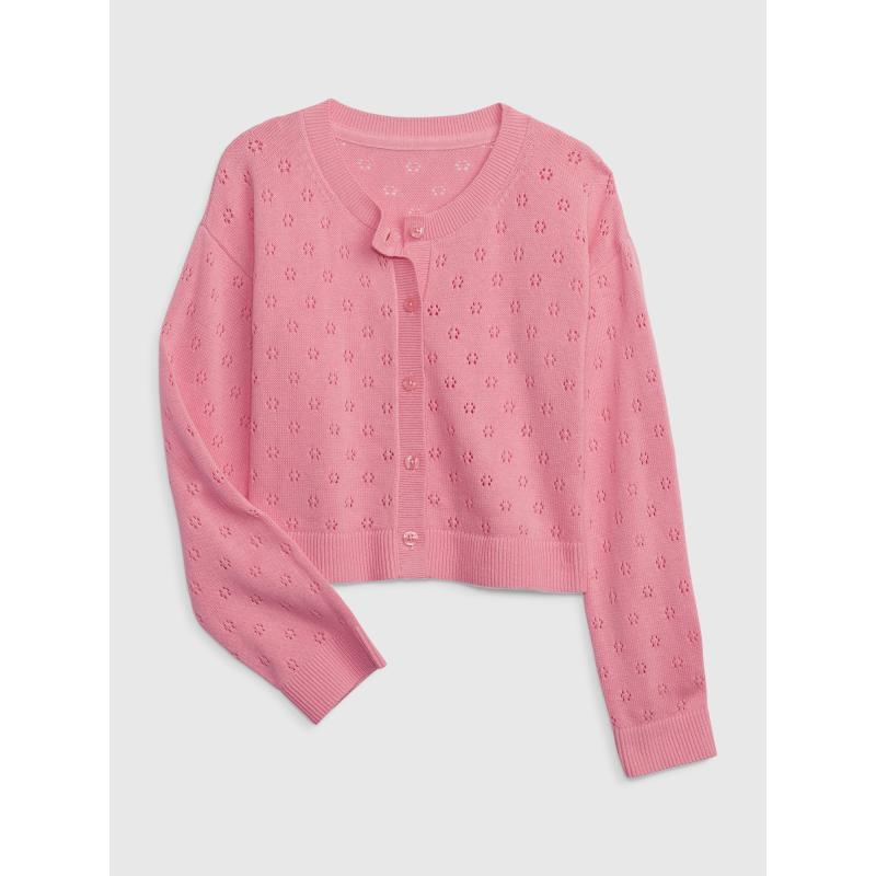 Dětský pletený kardigan.Se zapínáním na knoflíčky.Dlouhé rukávy s žebrovaným lemem.Měkká bavlněná pletenina.Krajkový vzor. 100 % bavlna
