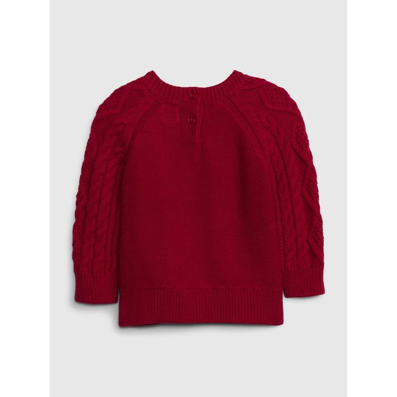 Dětský svetr z měkké pleteniny. Výrazný plastický vzor na přední straně a rukávech. Kulatý výstřih se zapínáním za krkem. Jednobarevný a rovný střih. 100% bavlna. 100 % bavlna