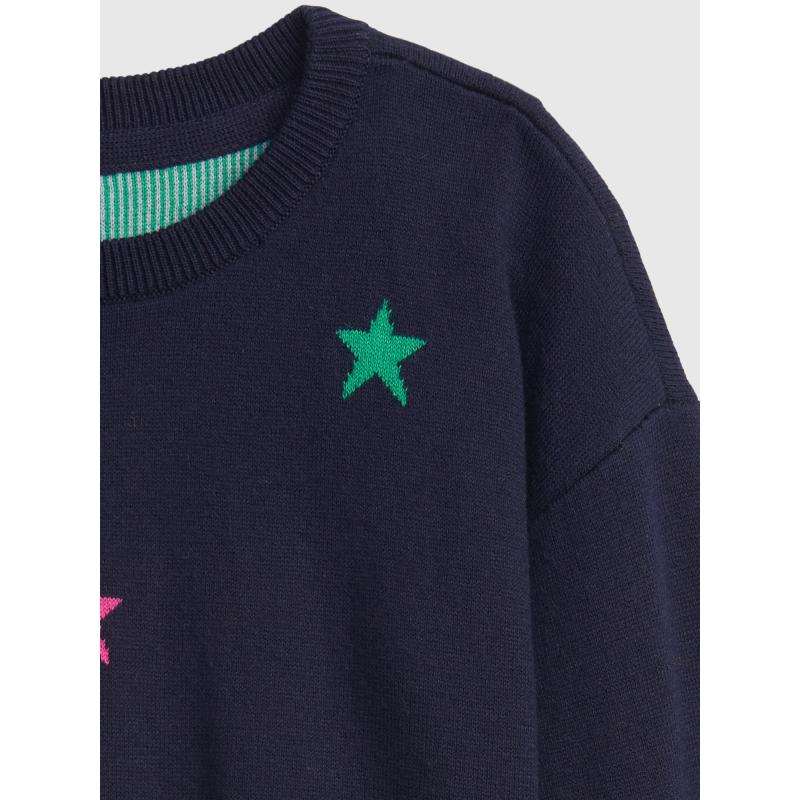 Dětský svetr s barevnými hvězdičkami. Kulatý výstřih. Široké a pružné náplety. 100% bavlna. 100 % bavlna