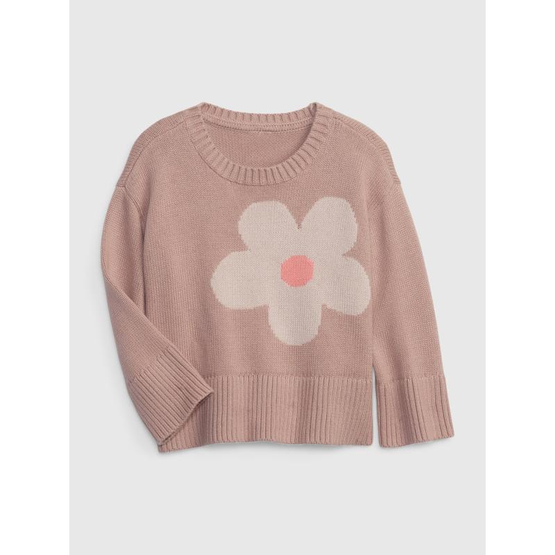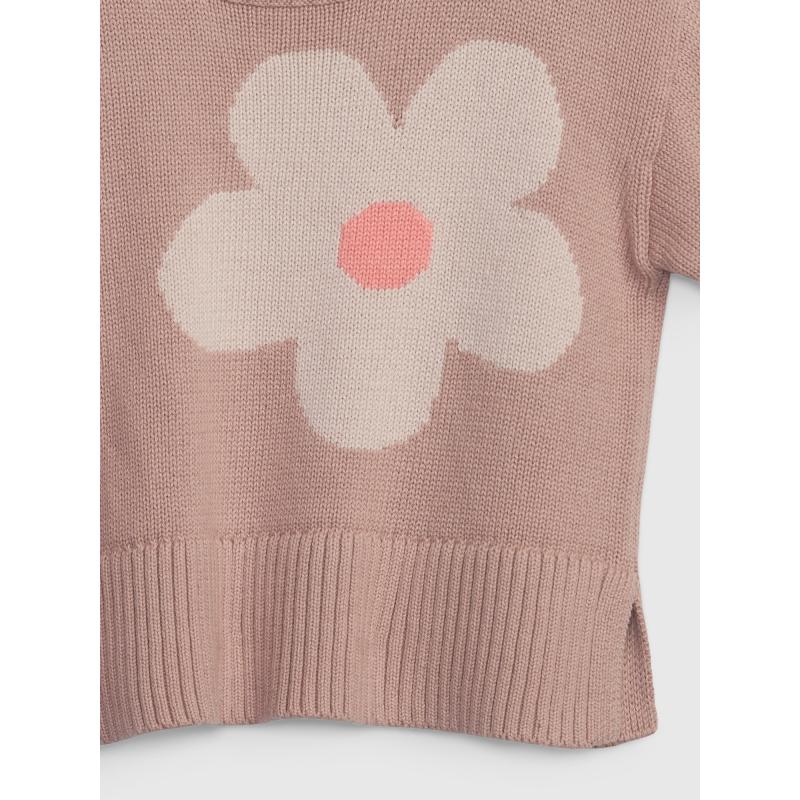 Dětský pletený svetr.Na přední straně květina.Měkká pletenina.Kulatý výstřih.Žebrované náplety a rozparky. 100 % bavlna