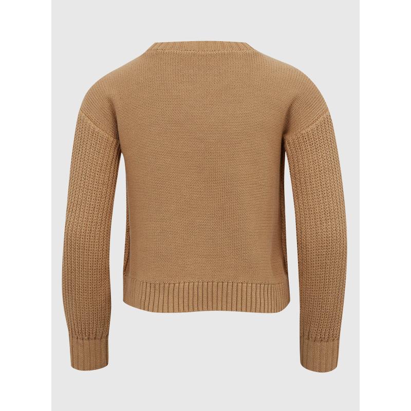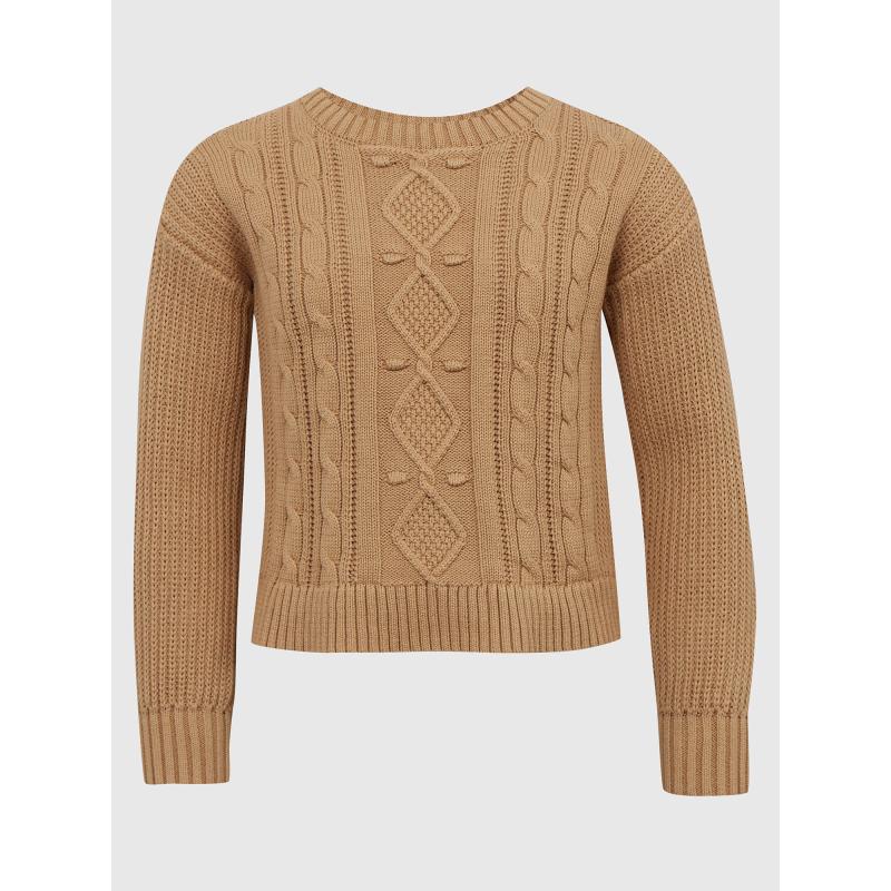 Dětský pletený svetr. Výrazný copánkový vzor. Kulatý výstřih. Dlouhé spadlé rukávy. 100 % bavlna
