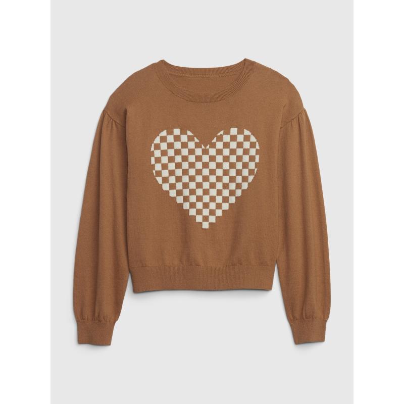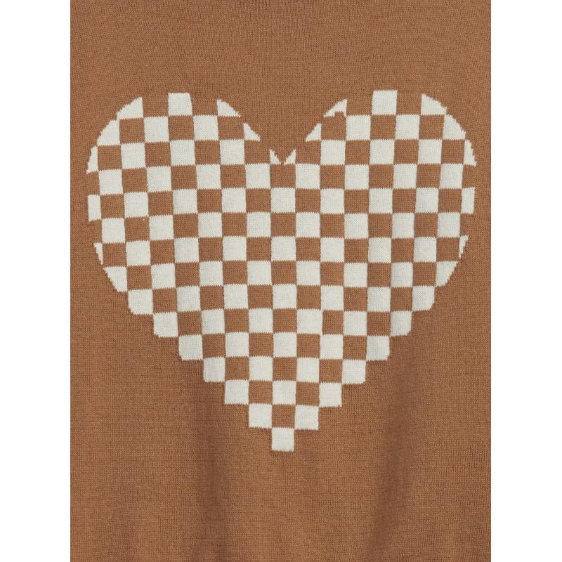 Dětský pletený svetr.Výrazné kostkované srdce.Kulatý výstřih s pružným lemem.Spadlé nabírané rukávy.100% bavlna. 100 % bavlna