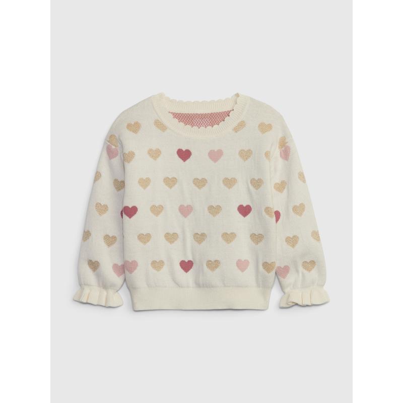Dětský pletený svetr.Plošný vzor srdce.Dlouhé rukávy a žebrované náplety. 100 % bavlna